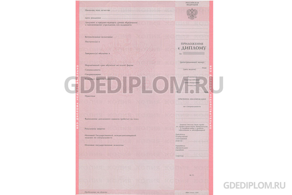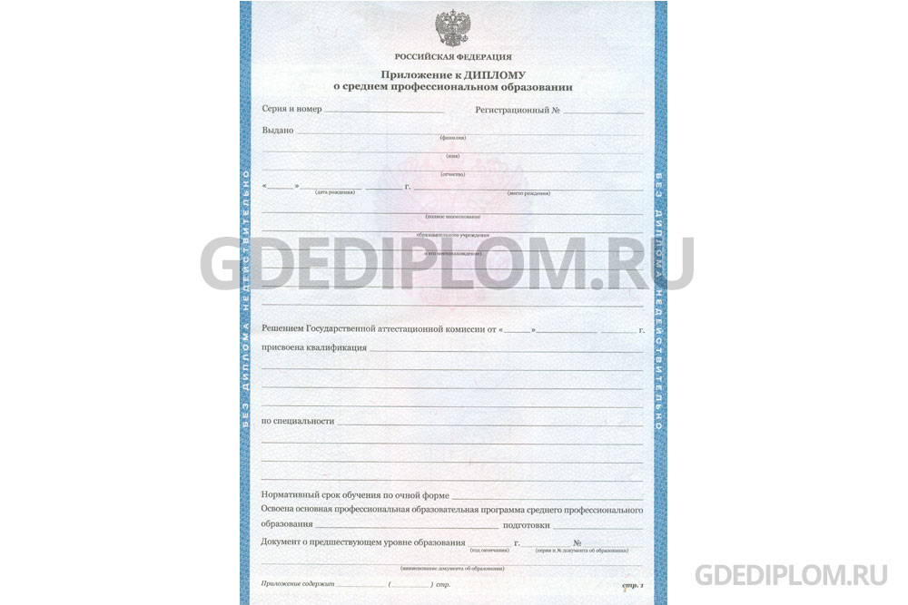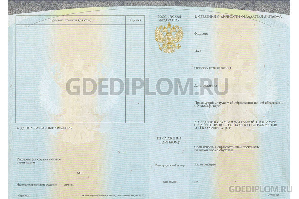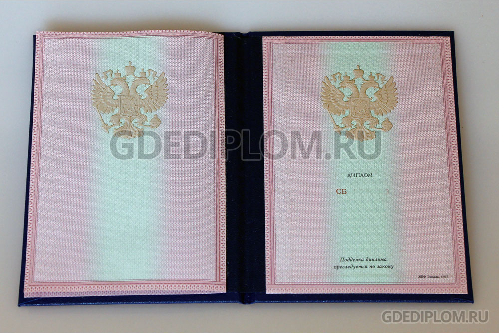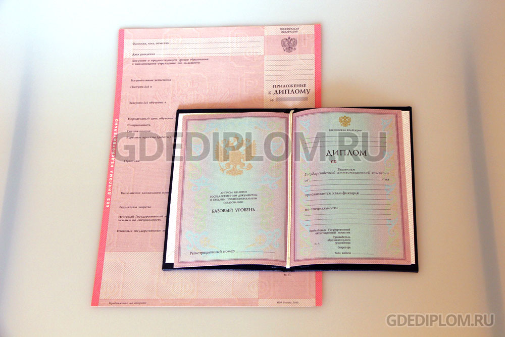 Государственный диплом об окончании ССУЗа в 2011, 2012, 2013 годах. Имеет все защитные элементы, в т.ч. люминесценцию, микротекст, водяные знаки, гильоширную сетку и пр. Заполняется по стандартам, мокрая печать, подписи, образовательная программа соответствует периоду обучения. Доставка бесплатно прямо в руки, оплата при получении.